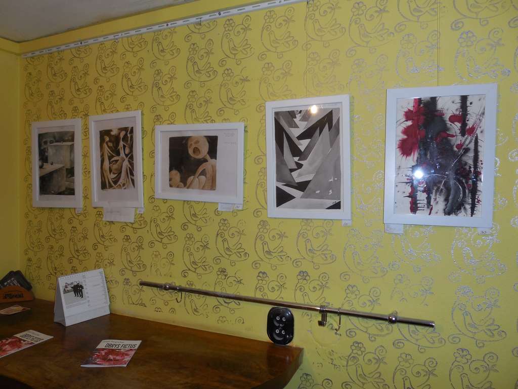 Výstava Obrys Fictus přináší sondu do volné tvorby brněnského ilustrátora, karikaturisty a výtvarníka Josefa Pospíchala (*1963).