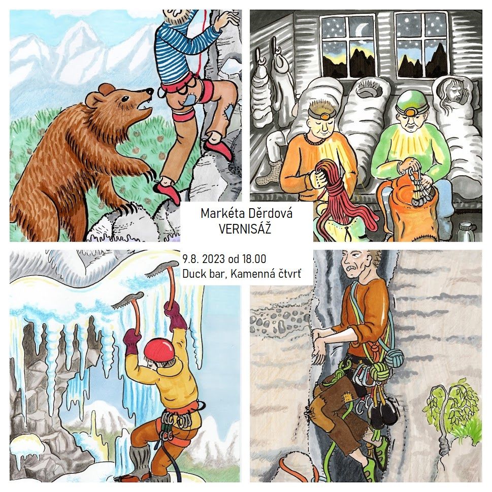 Markéta Děrdová je začínající ilustrátorka a komiksová kreslířka. Ve volném čase se také ráda věnuje horolezectví, cestování a toulání přírodou. Zážitky z lezení a výletů ztvárnila do série ilustrací, které budou od 9.srpna. v Duckbaru k vidění. Z obrázků čiší touha po objevování, cestovatelská pohoda a horolezecké trampoty.