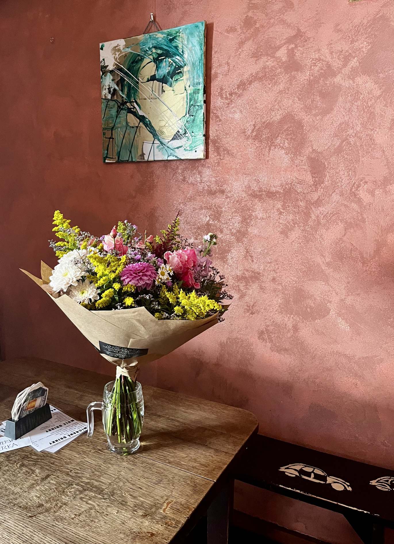 “Když děláte chyby v životě. A děláte je někdy vícekrát a ty stejné pořád dokola. A potom lepíte v živote, co můžete. Nakonec se s tím průběhem srovnáte a vytvoříte situaci a tím tak výsledek, se kterým jste spokojeni a jste v pohodě. Takhle tvořím i já. Lepím chybu za chybou, část za částí, odstín za odstínem, dokud nejsem v pohodě s tím, kde je každý detail, tečka nebo barva. Štětce u mě nenajdete. Jsou to špachtle, dláta, hráčské karty, nože, lžíce, nebo ruce apod.”